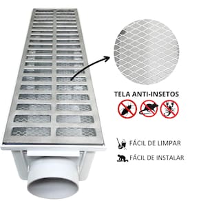 Modelo desenvolvido em alumínio com tela anti insetos. Recomendado para instalação em quintais, corredores externos, proporciona um excelente custo benefício e sua tela anti insetos impede assim a passagem de baratas, escorpiões e aranhas por exemplo que entram pelos ralos pluviais.
