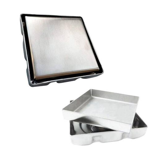Os ralos invisiveis são fabricados totalmente em aço inoxidável. Na versão oculta, a tampa deve ser confeccionada na obra por meio da colagem de uma peça do mesmo tipo de revestimento utilizado no restante do piso, ou com outro material à sua escolha.