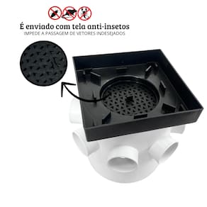 Composição: * Base Cola Piso 15x15 * Suporte Moldura de Instalação * Tela Anti Insetos * Caixa Sifonada 150mm - com 7 entradas de 40mm e 1 saída de 50mm
