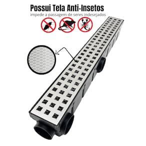 Grelha Pluvial Ralo Linear 6x50 Inox desenho Quadriculado e Caixa Coletora Saídas Tubo 40mm com Tela