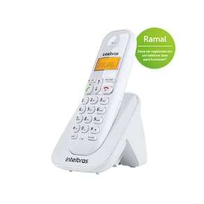 Ramal sem fio digital Intelbras DECT 6.0, agenda para 70 contatos, registro de chamadas, funções Flash, Rediscar e Mudo, tecnologia DECT 6.0, Eco Mode para redução do consumo de energia, comunicação interna, conferência a três e transferência de chamadas.Identificador de chamadas