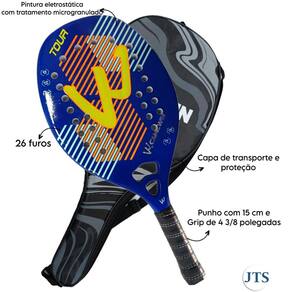 Raquete beach tennis camewin modelo br-4009 com capa protetora + overgrip + bola ++ qual a diferença entre as raquetes modelo 2022 e as novas 2023 ++ + possui pintura eletrostática envernizada, com grafismos mais moderno, além do tratamento microgranulado para efeitos em suas jogadas . Ajustes feitos pela camewin levando beleza, sofisticação e melhor equilíbrio e desempenho em seus jogos + As raquetes de beach tennis camewin são fabricadas em fibra de carbono e conta com a tecnologia que contribuem para sua alta performance, leveza e minimiza as chances de lesões. Desenvolvida para atletas que amam o esporte, desde os iniciantes aos mais experientes. Com elas os jogadores conseguirão fazer jogadas incríveis, sem exigir tanto das mãos e dos braços Características: - linha com alta velocidade de batidas; - superfície áspera com tratamento, para melhor aderência e jogadas de efeito; - 50 cm de comprimento para maior alcance e potência; - design super leve e resistente, proporcionando grande diferencial aos jogadores; - espessura fina, oferece controle e influencia no conforto ao rebater a bolinha; - material de alta qualidade e durabilidade; - o melhor custo-benefício do mercado; - modelo estiloso, moderno, com cores e desenhos vivos, que transmite personalidade ao jogador; - acompanha capa para transporte e overgrip para preservação da raquete, além da bola, prontinho para usar. Informações técnicas: Composição: fibra de carbono frame e corpo Praticantes: beach tennis do nível básico ao avançado Material externo: fibra de carbono Material interno: eva Peso aproximado: 315g a 330g Comprimento: 50cm Largura: 23,3cm Espessura: 2,2cm Comprimento do punho: 15cm Grip: 4 3/8 polegadas Frame: carbono Face: fibra de vidro Cor: solar blue 26 furos / pixel blue 26 furos / pixel green 26 furos / cyclone red 20 furos / jaws red 20 furos / tour 26 furos Furos: acima descrito do fabricante: contra defeito de fabricação 90 dias Origem: Itens inclusos: - 1 raquetes beach tennis - 1 capa de proteção - 1 overgrip - 1 bola - qual o prazo de envio R: nosso envio é imediato em até 24 horas após a confirmação de compra - possui R: sim de fábrica de 90 dias - qual material da raquete R: a frame em fibra de carbono e corpo em fibra de vidro. - o que acompanha o produto R: acompanha 1 raquete com capa, overgrip e bola. Marca: Não Informado
