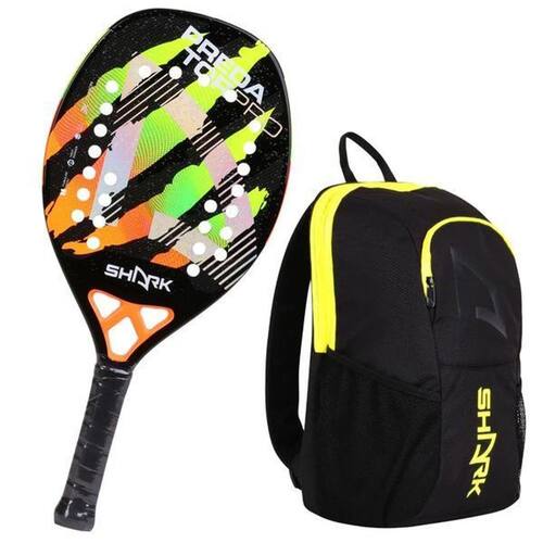 Raquete de Beach Tennis Shark Predator 22mm 2025 + Mochila Tour Amarelo A marca brasileira Shark vem crescendo a cada ano com os produtos específicos para Beach Tennis e se torna cada vez mais uma das marcas referência no mundo. Contando com uma ampla linha de raquetes de todos os níveis e sempre com excelente qualidade, a Shark fez seu último lançamento, Raquete de Beach Tennis Shark Predator 2025. Avaliamos este modelo que apresenta excelente estabilidade, por conta do coração em X e da estrutura tubular dupla de carbono e uma agilidade incrível obtida pela aerodinâmica e equilíbrios dos materiais e por conta das linhas de furação mais próximas a base da cabeça da raquete. Com 22mm de espessura e peso médio de 325g, esta raquete ágil também é poderosa, transformando o impacto com a bolinha numa explosão muito precisa. A aparência ganhou detalhes preciosos, com acabamento em alto brilho na estrutura da raquete e apliques refletivos com sistema FOIL HOLOGRAPHIC, no logo SHARK Já a mochila Shark Tour é projetada para atender suas necessidades com funcionalidade e estilo. Ela conta com um compartimento específico que acomoda uma raquete sem capa, além de um amplo espaço interno sem divisórias, ideal para guardar diversos itens. O bolso frontal com zíper é perfeito para pequenos objetos, garantindo fácil acesso e segurança. Nas laterais, bolsos elásticos em tecido telado oferecem ainda mais espaço para acessórios. As alças são acolchoadas e ajustáveis, proporcionando conforto ao carregar. Para maior praticidade, a mochila possui uma alça na parte superior, facilitando o transporte na mão. Características da Raqute de Beach Tennis Shark Predator 2025 - 22MM - Perfil: Performance; - Coleção: 2025; - Material de Frame: Carbono - Material de Face: Carbono 3K; - Tecnologia: EVA SOFT: Absorção de impactos. TUBULAR TECH: Tecidos tubulares duplos de carbono pré-impregnados com resinas de máxima durabilidade, proporcionando homogeneidade em todas as áreas da face e proporcionando maior rigidez, portanto, não é perdida energia da batida devido à distorção da armação; - Detalhamento: Possui uma pintura com tratamento microgrânulos que ajudam a gerar efeitos. 26 furos; - Comprimento: 50 cm; - Peso: 320 - 330 gramas aproximadamente; - Espessura: 22 mm; - Origem: Importado. Características da Mochila Shark Tour - Perfil: Padel e Beach Tennis; - Material: 100% poliéster; - Tamanho: 45 X 25 X 15 cm - Origem: Importado.