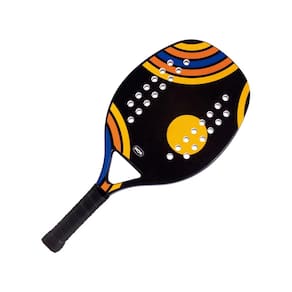 Ela possui 28 furos centrais para reduzir a resistência do ar, aumentando a precisão nos golpes, e perfil com cerca de 22 mm de espessura, oferecendo bom equilíbrio entre potência e controle. Em geral é leve, adequada para lazer na praia, e a marca orienta não deixar exposta ao sol ou chuva por longos períodos, nem usar produtos químicos na limpeza, para preservar o material por mais tempo.