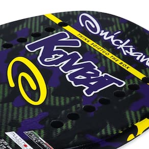 Descrição da Raquete de Beach Tennis Quicksand Kombat ?A Quicksand foi fundada em 2008 na ITÁLIA, por dois jogadores profissionais que decidiram fazer da sua enorme paixão um trabalho real. A marca tem um apelo forte, graças a uma imagem jovem e de produtos de alta qualidade. Após alguns anos a Quicksand decide investir em tecnologia, assim nasceu o projeto FUTURA SYSTEM, que abriu em definitivo as portas do mercado mundial. Ateste a qualidade desta marca através da Raquete de Beach Tennis Quicksand Kombat, ela é ideal para jogadores de nível intermediário e avançado em Beach Tennis, que buscam um equipamento que gere mais potência em seus golpes. Conheça as Características da Raquete de Beach Tennis Quicksand Kombat - Perfil: Intermediário / Avançado; - Lançamento: 2023; - Composição: Full Carbon 3K. Kevlar. EVA: White extra soft; - Tecnologia: SLIM MOULD com espessura de 21mm, MULTI-HOLE com furos espalhados ao redor do centro da raquete e WHITE EVA EXTRA SOFT de alta densidade, mais macio, onde o impacto da bola na raquete é sentido intensamente, sem abrir mão do controle e conforto; - Detalhamento: Possui uma pintura com tratamento áspero que ajuda a gerar efeitos, possui 14 furos e acompanha capa protetora; - Comprimento: 50cm; - Peso: Aproximadamente 335g; - Espessura: 21mm; - Garantia do Fabricante: 90 dias contra defeito de fabricação. OBS: Raquetes personalizadas (com tratamento adicional) perdem a garantia do fabricante; - Origem: Importado.