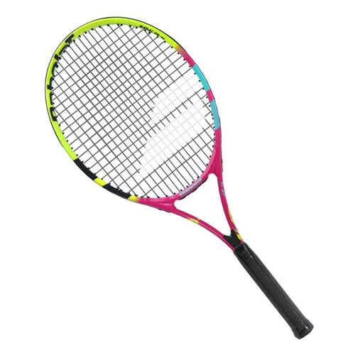 Conheça as características da Raquete de Tênis Babolat Nadal JR 26 240g Azul Amarela e Rosa- Perfil: Infantil (edição Rafel Nadal 2024);