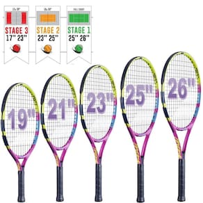 - SUGESTÃO DE TAMANHO: A moldura de 53 cm é recomendada para jogadores cuja altura esteja entre 109 e 124 cm. Adequado para iniciantes no tênis ou jogadores ocasionais.