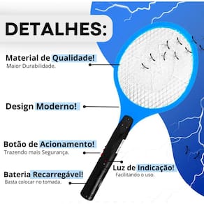 RAQUETE ELÉTRICA RECARREGÁVEL PARA MATAR MOSCAS, PERNILONGOS,