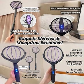 Este produto tem funções 4 em 1, incluindo matar mosquito manual, modo elétrico e modo de matar mosquito portátil. Ele também possui modo inteligente, onde ondas de luz UV atraem e matam os mosquitos.