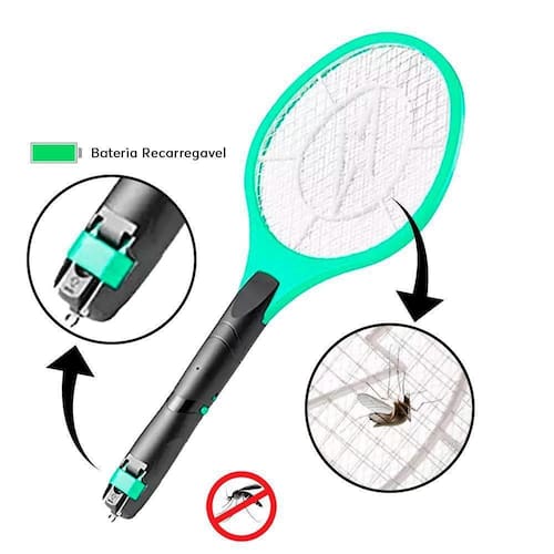Raquete Eletrica Recarregavel Mata Mosquito Da Dengue RAQUETE ELETRICA RECARREGAVEL a unica maneira de evitar a febre de dengue é eliminar o mosquito bivolt cor branca mata moscas, pernilongos e mosquito da dente com botao de segurança super potente cor: Branco Ean: 7899738900989