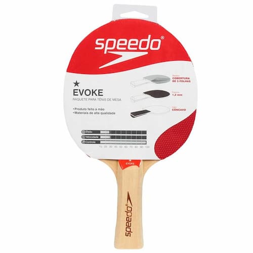 Raquete Speedo Evoke para tênis de mesa, conta com empunhadura confortável e é ideal para aprendizagem o esporte.
