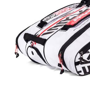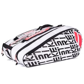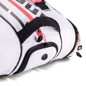 Raqueteira babolat mod. Rh x12 pure strike vermelha e branco A babolat tem escrito constantemente novas páginas na história do tênis. Hoje ela oferece tecnologias dedicadas a todos os jogadores apaixonados, dos campeões aos iniciantes. Com a credibilidade de uma importante marca internacional focada em artigos de tênis, a babolat apresenta a raqueteira pure strike x12 branca preta e coral, ela é essencial para quem deseja guardar seus equipamentos com segurança, conforto e muito estilo. Conheça as características da raqueteira babolat pure strike x12 branca preta e coral- perfil: tênis; - material: 80% poliuretano e 20% tpe ; - detalhamento: capacidade para até 12 raquetes sem capa. Possui 06 compartimentos com fechamento em zíper: três compartimentos principais sendo dois térmicos, dois bolsos laterais, um deles têm bolso interno em tela com fechamento em zíper e um bolso comum para pequenos objetos. Um compartimento para calçado. Possui alças tipo mochila acolchoadas e ajustáveis; duas alças de mão e uma alça reforçada no topo. Visor de identificação. Marca babolat pure strike estampada por toda a raqueteira. Acompanha um saco para transportar peças sujas (por exemplo); - dimensões: 70cm x 31cm x 42cm (c x a x p); - garantia do fabricante: contra defeito de fabricação; - origem: importada.