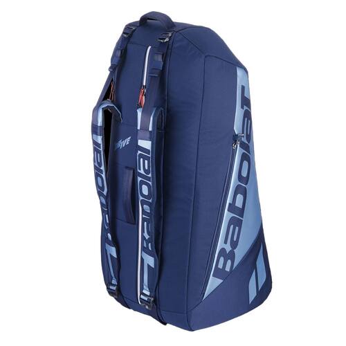 - Detalhamento: Dois compartimentos principais que juntos comportam até seis raquetes sem capa, sendo que um dos compartimentos é térmico, bolso externo com organizador e bolso interno, e um bolso frontal com respiro para acomodar peças úmidas ou um par de calçados, alças ajustáveis e acolchoadas, escrita Babolat na lateral;