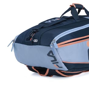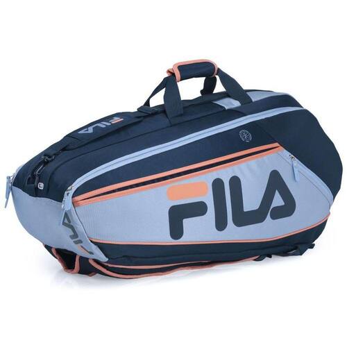 Raqueteira Fila Vincitori Marinho e Azul Delave Claro Descrição da Raqueteira Fila Vincitori Marinho e Azul Delave ClaroA Fila é uma marca italiana especializada no desenvolvimento e na produção de artigos esportivos. Está presente nas principais modalidades e nos principais eventos esportivos do mundo, é patrocinadora de diversos atletas. Conheça a qualidade Fila através da prática Raqueteira Fila Vincitori Marinho e Azul Delave Claro, ela é ideal para transportar seu equipamento e acessórios com total conforto, organização e segurança. Conheça as características da Raqueteira Fila Vincitori Marinho e Azul Delave Claro- Perfil: Tennis; - Material: 100% Poliéster; - Detalhamento: Um compartimento com fechamento em zíper que comporta até 9 raquetes sem capa, um compartimento térmico, bolso para armazenar roupa molha e/ou calçados, um bolso externo em cada lateral com fechamento em zíper, alça regulável, escrita Fila nas laterais; - Garantia do fabricante: Contra defeito de fabricação; - Origem: Importado.