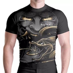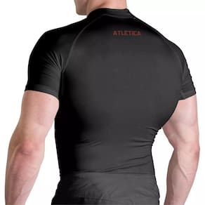 Rash Guard Masculina Atlética Esta Rash Guard é produzida com Supplex, que oferece aos nossos clientes a sensação do algodão com os benefícios da tecnologia de fibra avançada. Todo tecido utilizado nas Rash Guard pela Atlética Esportes é de alta tecnologia, próprio para melhorar o desempenho na prática esportiva. Composição: Rash Guard é confeccionada em Suplex de Poliester: 91,7% Poliester / 8,3% Elastano. Medidas aproximadas que essa Rash Guard veste: P - Largura: 45cm - Altura: 67 cm M - Largura: 46,5cm - Altura: 69 cm G - Largura: 48cm - Altura: 71 cm GG - Largura: 50cm - Altura: 73 cm Seus principais atributos na prática de atividades físicas são: - Adere totalmente ao corpo com equilibrada compressão, atributos necessários na prevenção de câimbras e distensões musculares; - Proporciona conforto, liberdade de movimentos e resistência; - Não cria odores de transpiração; - Mantém a temperatura corporal; - Não perde a cor nas lavagens; - Possui proteção contra raios UV; Nossas Rash Guard proporcionam maior velocidade de secagem, maior conforto térmico, ou seja, rápida transferência do calor e umidade do corpo para o ambiente através do tecido. Dicas de Cuidado: - A roupa suja não deve ser acumulada por muito tempo, devendo ser mantida seca e longe da luz solar e em local fresco e arejado (nunca deixar embalada em sacos plasticos). - Separar as cores claras e escuras. - Usar sabões neutros, utilizando sempre a quantidade indicada pelo fabricante (o sabão deve ter na embalagem a garantia de que é específico para artigos delicados). - Não deixe molhado, não torça e não guarde molhado.