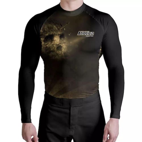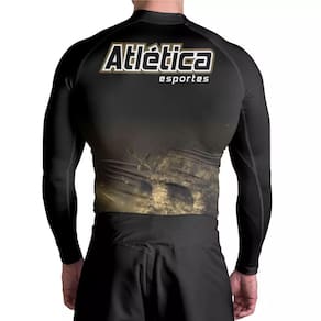 Rash Guard Masculina Atlética Esta Rash Guard é produzida com Supplex, que oferece aos nossos clientes a sensação do algodão com os benefícios da tecnologia de fibra avançada. Todo tecido utilizado nas Rash Guard pela Atlética Esportes é de alta tecnologia, próprio para melhorar o desempenho na prática esportiva. Composição: Rash Guard é confeccionada em Suplex de Poliester: 91,7% Poliester / 8,3% Elastano. Medidas aproximadas que essa Rash Guard veste: P - Largura: 45cm - Altura: 67 cm M - Largura: 46,5cm - Altura: 69 cm G - Largura: 48cm - Altura: 71 cm GG - Largura: 50cm - Altura: 73 cm Seus principais atributos na prática de atividades físicas são: - Adere totalmente ao corpo com equilibrada compressão, atributos necessários na prevenção de câimbras e distensões musculares; - Proporciona conforto, liberdade de movimentos e resistência; - Não cria odores de transpiração; - Mantém a temperatura corporal; - Não perde a cor nas lavagens; - Possui proteção contra raios UV; Nossas Rash Guard proporcionam maior velocidade de secagem, maior conforto térmico, ou seja, rápida transferência do calor e umidade do corpo para o ambiente através do tecido. Dicas de Cuidado: - A roupa suja não deve ser acumulada por muito tempo, devendo ser mantida seca e longe da luz solar e em local fresco e arejado (nunca deixar embalada em sacos plasticos). - Separar as cores claras e escuras. - Usar sabões neutros, utilizando sempre a quantidade indicada pelo fabricante (o sabão deve ter na embalagem a garantia de que é específico para artigos delicados). - Não deixe molhado, não torça e não guarde molhado.