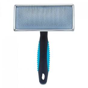 A Rasqueadeira Reta Clássica Propetz possui pinos de aço cujas pontas terminam em ângulo de 45 graus, que tornam a escovação mais eficiente para desembaraçar nós e remover pelos mortos de animais com pelagens médias ou longas.Possui design inovador, com chapa em aço inoxidável. O cabo de borracha promove a rasqueadeira mais conforto e suavidade, proporcionando firmeza e controle na pressão exercida contra a pele ao segurar. Os pinos são de aço inoxidável, proporcionando excelentes resultados de higiene com menos esforço. É a rasqueadeira mais usada dentro do banho & tosa.Material: Plástico ABS, que é resistente, leve, flexível e isolante elétrico.Instruções para uso:Passe gentilmente a Rasqueadeira ProPetz Clássica na direção de crescimento da pelagem. Repita até o pelo estar totalmente desembaraçado. Indicada também para fazer o pelo ficar mais volumoso durante o ato de secagem.Código interno: E1CMA-100