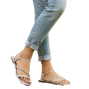 A Sandália Rasteira Dpé Anna Virgínia redefine o conceito de rasteira elegante. Seu grande diferencial é a correia brilhante verticalizada, um detalhe de design que valoriza a anatomia dos pés, proporcionando um visual sofisticado e moderno na cor Prata.