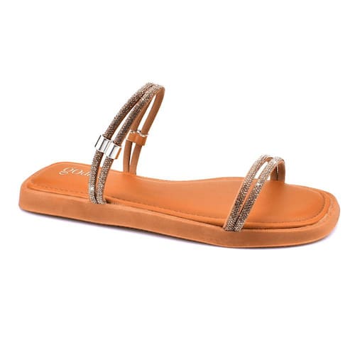 Eleve o seu estilo com a elegante Rasteira Flat Sandália Brilho Strass Amber. O charme dos detalhes em Strass traz sofisticação e brilho para o seu visual. Seu conforto é garantido pelo solado macio. As tiras traseiras são ajustáveis, com a opção de usar como rasteira ou sandália. Seja o centro das atenções com essa Rasteira Sandália Strass Amber GODIVA.