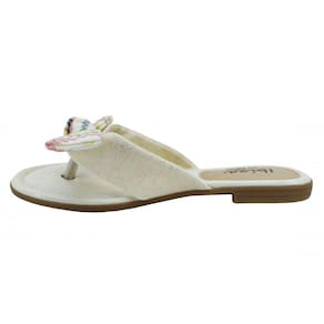 Rasteira Kidy Flat Ibiza Bege Off White Laço Colorido 321628