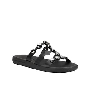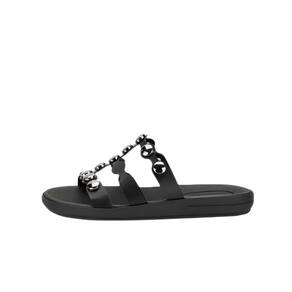 Rasteira Moleca Tiras Finas Com Detalhes Metalizados Feminino Preto 347337
