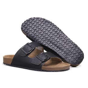 Rasteira Papete Couro Palmilha Anatomica Unissex Fivela Com Regulagem Tendencia - 37 - Preto