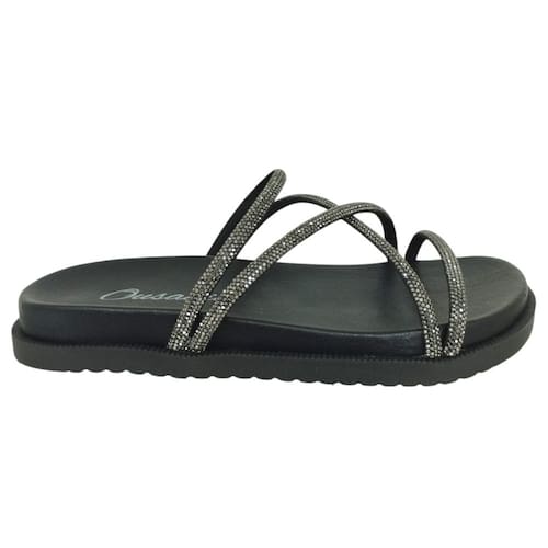 O destaque da Rasteira Ousadia está nas tiras com brilho, que adicionam um toque de glamour ao seu visual. Confeccionada em napa de alta qualidade, ela oferece um acabamento refinado e durabilidade, suportando o uso diário com elegância. As tiras ajustáveis garantem um encaixe perfeito aos pés, proporcionando maior conforto e segurança ao caminhar.