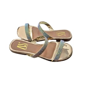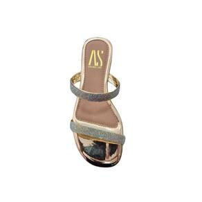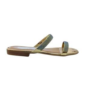Rasteira Rasteirinha Feminina Metalizada Com Brilho Strass Tiras Finas Confortaveis Leve Dia a Dia - 38 - Amarelo Claro