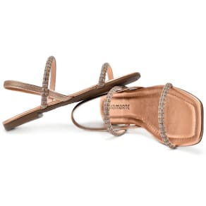 Experimente o conforto e a sofisticação da rasteira Via Marte. Com seu solado flat e bico quadrado, oferece um equilíbrio perfeito entre moda e bem-estar. Este modelo inclui um elástico para um ajuste seguro e tiras que envolvem seus pés apresentam um detalhe com brilho incomparável, proporcionando um estilo moderno e versátil que eleva todos os seus looks a um novo nível de elegância.