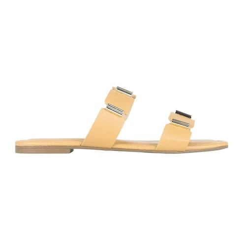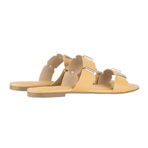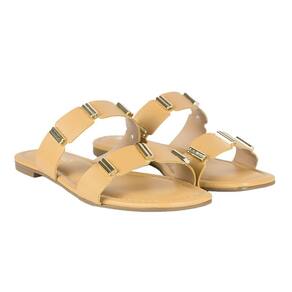 VIA UNO Sobre a marca: A Via Uno acompanha as principais tendências e lançamentos da moda mundial com o lifestyle urbano e moderno, oferecendo calçados versáteis, diversos estilos e muito conforto para a mulher contemporânea. Sandália rasteira de calce fácil, com duas tiras e enfeite metalizado que traz beleza ao produto.