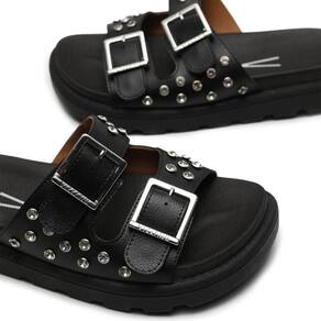 Este modelo recebe apliques brilhantes e fivelas nas tiras para levar um charme especial ao seu visual.