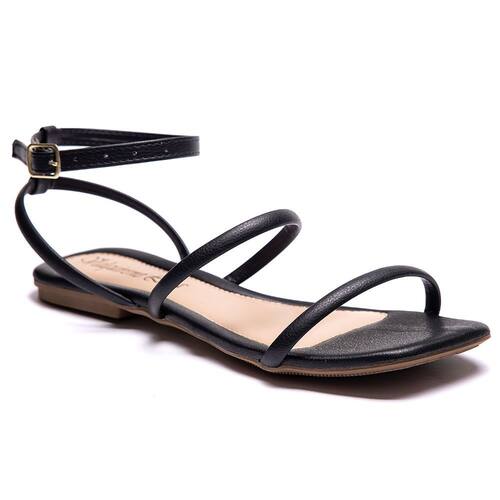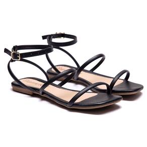 Rasteirinha Bico Quadrado Feminina Rasteira Basica Solado PVE Resistente Tiras Finas Palmilha EVA - 39 - Preto
