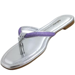 A Rasteirinha Dakota com Glitter e pintura metalizada é a escolha perfeita para quem busca um equilíbrio entre conforto e estilo. Este modelo é monocolor e composto por tiras finas que se destacam pelo detalhe de nó, acrescentando um toque de charme à sua aparência. O toque final de sofisticação vem dos brilhos que adornam as tiras, conferindo um brilho sutil, mas marcante, ao calçado. Além disso, este chinelo oferece leveza e praticidade, tornando-o uma escolha versátil para diversas ocasiões.