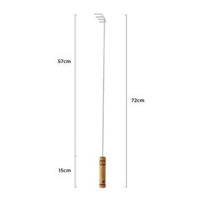 Este rastelo é sensacional. Linda e prática peça feita em aço carbono cromado. Chega de sujar as mãos e unhas espalhando as brasas na sua churrasqueira. Além de tudo lhe trará muito mais segurança e isso é muito mais que importante. Medida total de 72cm contando o cabo. O cabo de madeira mede 13cm e tem ótima empunhadura. Pesa apenas 230 gramas. Você não pode ficar sem esta peça entre seus apetrechos de churrasco.