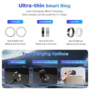 Monitoramento de integridade de precisão: o anel inteligente é um anel de fitness/anel de saúde inteligente/anel rastreador de sono, o rastreador de saúde do anel inteligente está gravando frequência cardíaca, passos, distância, monitoramento de calorias, usando tecnologia avançada de gestos de ar, você pode tocar a superfície do anel, deslizar para controlar o Tik tok para virar páginas para cima e para baixo, tirar fotos e vídeos remotamente, jogar, virar páginas de e-books etc., desfrute de uma experiência interativa mais conveniente - Confortável de usar e à prova d'água: após esforços contínuos e inovação, a espessura desta nova geração de anel de saúde vital ultrafino para mulheres e homens é 0,2 cm, o que é 0,1 cm mais fino do que os outros, a largura desses anéis inteligentes para homens é de 0,6 cm, que é 0,2 cm mais estreito do que outros anéis inteligentes, e é muito confortável de usar, o anel de saúde é à prova d'água e feito de materiais de alta qualidade. garantindo que ele possa lidar com tudo de exercícios a chuveiros. - Monitoramento de precisão do sono: estes anéis de saúde ultrafinos para mulheres e homens também podem monitorar automaticamente seu sono. Este anel rastreador de sono permite que você visualize dados de sono diários, semanais e mensais no aplicativo. Melhore a qualidade do seu sono com relatórios detalhados sobre sono profundo, sono leve, movimento dos olhos e número de despertares. - Rastreador de atividades físicas: os anéis de fitness para mulheres e homens rastreiam automaticamente várias atividades, servem como um rastreador de fitness abrangente, mantenha seus objetivos de fitness no caminho certo monitorando seus passos, tempo esportivo, frequência cardíaca, calorias queimadas, distância ao longo do dia e níveis de atividade. O anel fitness ajuda você a se manter motivado e ativo. - Monitoramento holístico de saúde: monitore sua saúde sem esforço com este anel inteligente fino, anel de saúde vital para mulheres e homens, que monitora a qualidade do sono 24 horas, níveis de atividade 24 horas, frequência cardíaca de 24 horas, saturação de oxigênio no sangue 24 horas e queima diária de calorias. O anel rastreador de sono fitness pode ficar no topo da sua forma física e bem-estar geral. - Bateria de longa duração: o anel inteligente ultrafino para mulheres e homens usa tecnologia avançada de carregamento sem fio, depois que o rastreador de sono estiver totalmente carregado, pode ser utilizado continuamente por até 5 a 7 dias. O estojo de carregamento portátil é bom e ideal para viajantes de negócios frequentes e entusiastas de atividades ao ar livre, garantindo monitoramento contínuo da saúde, não importa onde você esteja. Seja um aniversário, Dia dos Namorados, Dia das Mães, Dia dos Pais, Ação de Graças ou Natal, anéis de fitness para mulheres são uma escolha prática e significativa.