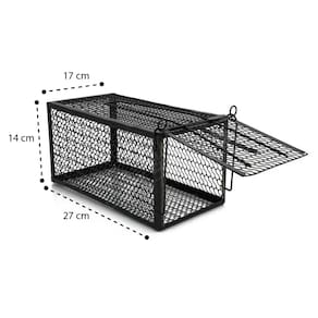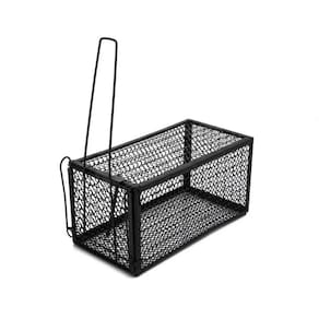 Ratoeira tipo gaiola de metal. Armadilha projetada para a captura de roedores tais como ratazanas, ratos, camundongos e etc... Essas pragas podem penetrar em espaços pequenos e roer fios elétricos,cabos telefônicos e, com isso, podem vir a causar curtos circuitos e provocar incêndios. Além dos prejuízos econômicos, podem prejudicar a saúde humana e de outros animais, são transmissores de diversas doenças. Esta ratoeira é de facil montagem/instalação e prática para o uso. Basta utilizar uma isca atrativa e esperar para que o roedor seja capturado.