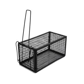 Ratoeira tipo gaiola de metal. Armadilha projetada para a captura de roedores tais como ratazanas, ratos, camundongos e etc... Essas pragas podem penetrar em espaços pequenos e roer fios elétricos,cabos telefônicos e, com isso, podem vir a causar curtos circuitos e provocar incêndios. Além dos prejuízos econômicos, podem prejudicar a saúde humana e de outros animais, são transmissores de diversas doenças. Esta ratoeira é de facil montagem/instalação e prática para o uso. Basta utilizar uma isca atrativa e esperar para que o roedor seja capturado.
