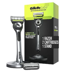 Máquina de barbear masculina Gillette Labs com barra esfoliante, kit de barbear para homens, inclui 1 alça, 2 recargas de lâmina de barbear, 1 suporte magnético premium — Máquina de barbear