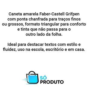 Descrição A caneta grifpen faber castell amarela é a escolha perfeita para realçar suas ideias e destacar informações importantes. Com sua tinta amarela superfluorescente, essa caneta garante um excelente destaque em livros, listas de produção, documentos e mais. Possui ponta chanfrada para traços finos e grossos e formato triangular para maior conforto ao escrever.