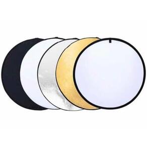 Rebatedor Circular 5 em 1 O rebatedor / difusor 5 em 1 permite que você ilumine ou suavize áreas de sombra do objeto a ser fotografado. Ele oferece quatro superfície reflexivas prata, branco, ouro, preto , uma difusora.. Tela ouro: cria uma sensação quente, de verão, que funciona bem com tons de pele. Tela prata: aumenta os reflexos especulares e produz uma imagem de alto contraste. É perfeita para vídeo, fotos de produtos, e P&B fotografia. Tela preta: elimina os reflexos indesejados e tonalidades de cor ou faz o bloqueio da luz. Tela branca: resalta as cores neutras, funciona como um preenchimento da fonte de luz para fotos de produto e indoor / outdoor retratos. Tela difusora: é Utilizado para difundir a luz dura, produzindo uma ampla fonte de luz e um efeito suave e envolvente, ideal para retratos ao ar livre ou sempre que uma luz mais suave é necessária. Caracteristicas: Diâmetro aberto: 60cm. Diâmetro fechado: 20cm. Acompanha bolsa para transporte. Conteúdo da embalagem: 01 Rebatedor circular 01 Bolsa para transporte