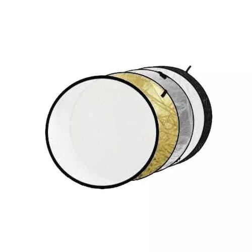 Rebatedor Fotográfico 5 em 1 110cm EquifotoAcompanha rebatedores prata, dourado, branco e preto mais um disco difusor branco translúcido.Estes refletores são muito populares em fotografia, tanto em estúdio quanto em fotografias externas. Quando dobrado, fica com cerca de 1/3 do tamanho originalAcompanha um estojo em nylon para transporte.O rebatedor é composto de um aro metálico com tecido translúcido branco, coberto com uma capa.Para utilizar, basta abrir o rebatedor, e refletir a luz com a cor desejada. Caso deseje utilizar a superfície que está do lado avesso, basta abrir o zíper reversível, e virar a capa do avesso, fechando o zíper.As superfícies do refletor refletem a luz, proporcionando um ar profissional às fotos.As aplicações mais usuais são: Rebatedor dourado: cria uma sensação quente, de verão, que funciona bem com tons de pele; Rebatedor prateado: aumenta os reflexos especulares e produz uma imagem de alto contraste. É perfeita para vídeo, fotos de produtos, e P&B fotografia; Rebatedor preto: elimina reflexos indesejados ou tonalidades de cor; Rebatedor branco: resalta as cores neutras, funciona como um preenchimento da fonte de luz para fotos de produto e indoor / outdoor retratos; Tela difusora: é usada para difundir a luz dura, produzindo uma ampla fonte de luz e um efeito suave e envolvente, ideal para retratos ao ar livre ou sempre que uma luz mais suave é necessária.