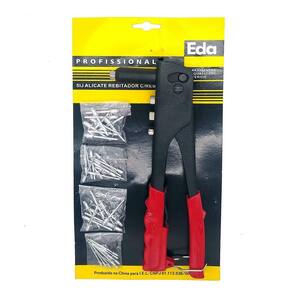 Rebitadeira manual 4 pontas para rebites tamanhos: 2,4 milímetros, 3,2 milímetros, 4,0 milímetros, 4,8 milímetros Estrutura em aço carbono. Cabo emborrachado. Clip de travamento do cabo Fácil manuseio.