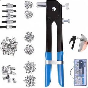 Apresentamos o Kit Completo de Ferramentas de Rebitagem com Porca Rebite (Rivet Nut) de 106 peças, essencial para garantir fixações permanentes e roscas firmes em chapas, metais finos, plásticos e outros materiais onde não há acesso ao lado oposto.