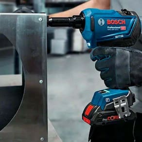 A rebitadora sem fio GRG 18V-16 C Professional permite colocar uma gama ampla de rebites cegos (diâmetros 3,06,4 mm), com uma força de tração constante de 16.000 N. Esta rebitadora dispõe de 2 modos de trabalho: AUTO para um funcionamento automático e MANUAL para um controlo individual da operação de trabalho. Conta ainda com sistema de conectividade Bluetooth, que permite ao profissional personalizar e programar o calendário de manutenção da ferramenta através da App Bosch Toolbox.