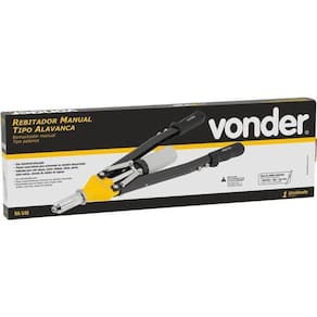 Rebitador alavanca ra540 vonder 3581540000 Conteúdo da embalagem: 1 rebitador. Acompanha: 1 bico de 2,4 mm, 1 bico de 3,2 mm, 1 bico de 4,0 mm, 1 bico de 4,8 mm, 1 bico de 6,4 mm e 1 chave.