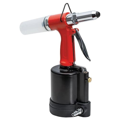 Indicada para unir peças, como: chapas, tubos, perfis, entre outros, através de rebites de repuxo. Muito utilizado em linhas de produção. Ele agiliza o processo de rebitagem, garantindo maior produtividade com menor esforço ao operador,além de possuir reservatório, que coleta o mandril do rebite após a utilização, conferindo maior limpeza e segurança no ambiente de trabalho. Possui ainda filtro de ruído, que proporciona maior conforto ao operador.