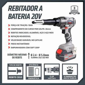 Rebitador Industrial 10Kn Sem Fio 26Mm Bateria 8Ah 20V Super