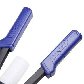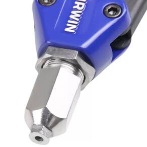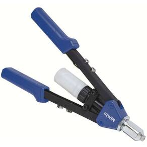 Rebitador Manual Alavanca R450 HD 1887143 Irwin, seu corpo é produzido com uma liga de alumínio de alta resistência, enquanto a área da sanfona é feita de aço de alta performance e as castanhas internas são em aço Cromo-Molibdênio. Com um comprimento total de 32" quando aberto, este Rebitador Manual possui uma trava de segurança exclusiva que evita acidentes na área da sanfona e facilita o armazenamento da ferramenta.