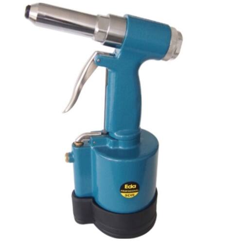 - Rebitador pneumático 1/4" Pol Eda 9DR - Utilizada para fixação de rebites de alumínio em geral, em indústrias, metalúrgicas, montadoras de máquinas e luminárias, unir chapas metálicas por meio de rebites, fixar componentes e peças por meio de rebites - Corpo fabricado em aço e alumínio, com base emborrachada