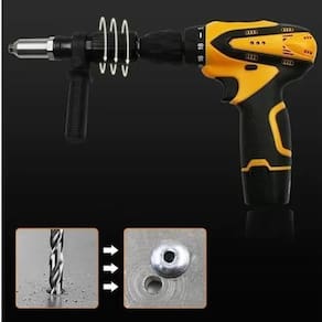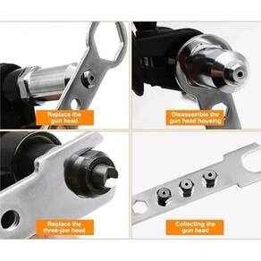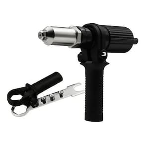 Rebitador Rebitadeira Adaptador Para Parafusadeira Rebite Especificações: Material: Aço Cor: preto + prata Interface de rebites adequados: 2,4 mm, 3,2 mm, 4,0 mm, 4,8 mm Comprimento do mandril: 30 mm / 1,2 pol. Diâmetro do mandril: 8 mm / 0,3 pol. Comprimento total do adaptador: 143 mm / 5,6 pol. sem mandril Comprimento total da chave: 149 mm / 5,9 pol. Comprimento total da alça: 123 mm / 4,8 pol.